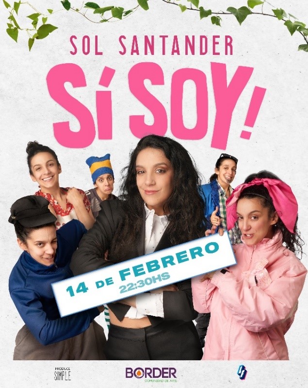 Sol Santander presenta su unipersonal “Sí soy!” el viernes 14 de febrero a las 23:30 en el Teatro Border, la sala ubicada en Godoy Cruz 1838.